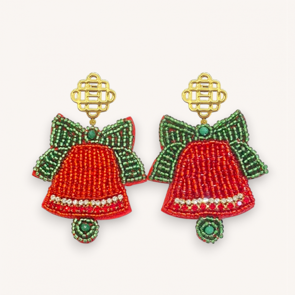 Festliche Statement-Ohrringe in Form von Christmas Bells – liebevoll handbestickt, leicht am Ohr und ein echter Holiday-Hingucker. Mit funkelnden Details und eleganter Steckerform. Gesamtgröße: 7 cm.