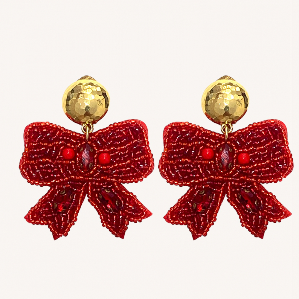 Ein kleines Fest am Ohr: Unser roter Schleifen-Ohrclip ist ein charmanter Begleiter für die schönste Zeit des Jahres. Die verspielte Schleife ist mit feinen Perlchen bestickt und wirkt gleichzeitig edel und leicht.