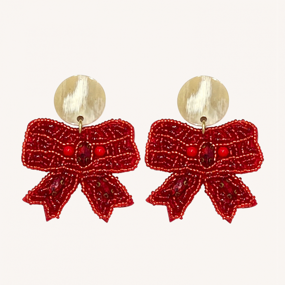 Ein kleines Fest am Ohr: Unser roter Schleifen-Ohrschmuck ist ein charmanter Begleiter für die schönste Zeit des Jahres. Die verspielte Schleife ist mit feinen Perlchen bestickt und wirkt gleichzeitig edel und leicht.